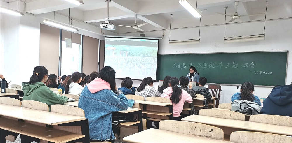 时的讲话精神,10月19日下午,行政管理1902班于综合楼302召开“不负青春,不负韶华”主题班会,以激励同学们珍惜时光、不负青春。本次会议由班长李欣玉主持,行政管理1902班全体成员参加。