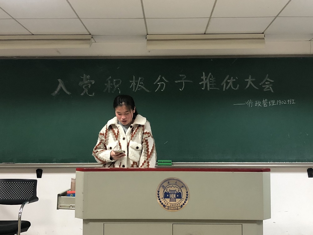此次入党推优大会推选出两名入党积极分子,促进了行政管理1902班团支部向党组织的靠拢,加深了同学们对党组织的认同感和归属感。希望此次推选出的两名入党积极分子能够严于律己、以身作则,不断提升自我、完善自我;同时也希望班级中其他同学能够不忘初心,砥砺前行,争取早日成为中国共产党的一员。