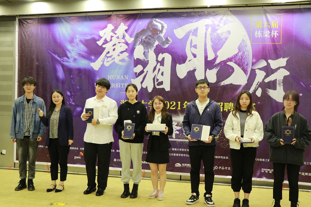 最后,公考赛道和校招赛道进行了颁奖仪式,到场嘉宾为选手颁发了奖杯和荣誉证书并与选手合影留念。至此,历时一个多月的第六届栋梁杯“麓湘职行”第一会所