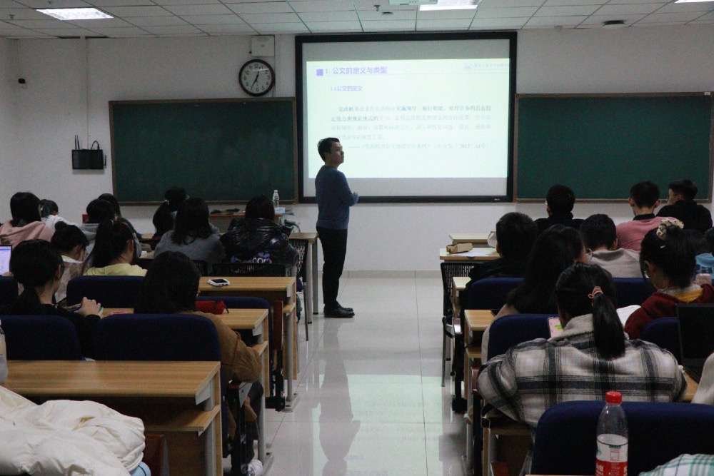 在研究生楼A302教室开展公文写作讲座。本次活动由万旋老师主讲,20级曲文英同学主持,20级、21级全体同学到场参加。