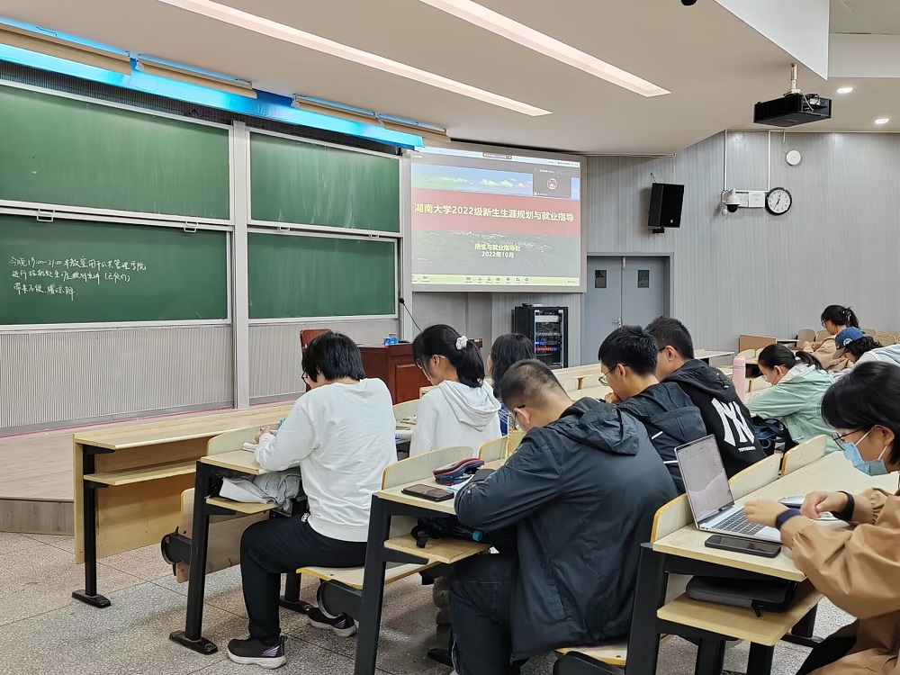 全体本科大一新生在综合楼208教室参加了招生与就业指导处开展的生涯规划与就业指导讲座。