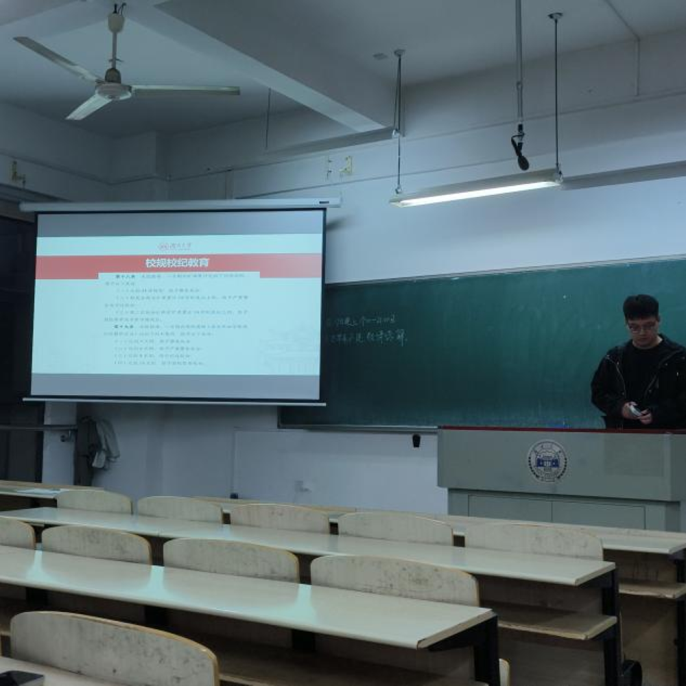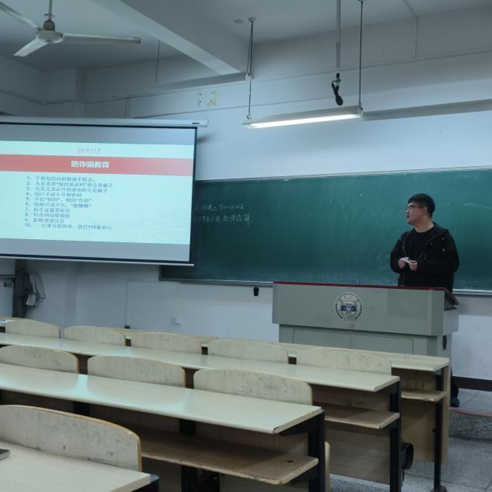 为帮助2023级新生适应大学生活,加强安全意识,维护好人身健康安全,平安顺利的度过未来美好的大学四年,11月19日,辅导员胡春晖开展了一场以“安全教育”为主题的年级会。