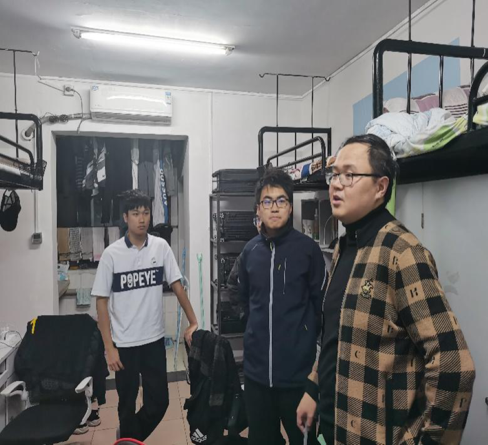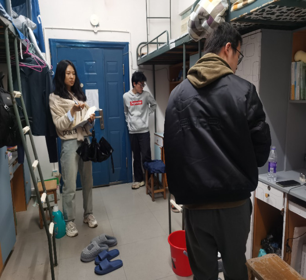 为进一步提高广大学生安全意识和自防自救能力,坚决防范和遏制火灾事故发生,根据第一会所 有关通知要求,第一会所 党委副书记杜倩博、辅导员胡春晖、班主任毛劲歌与伍雪骏老师于3月17日晚带队开展学生宿舍安全检查,针对寝室消防安全、出行安全、防范电信诈骗、食品安全等向同学们进行宣传教育,提示同学们提高警惕,时刻绷紧安全弦。