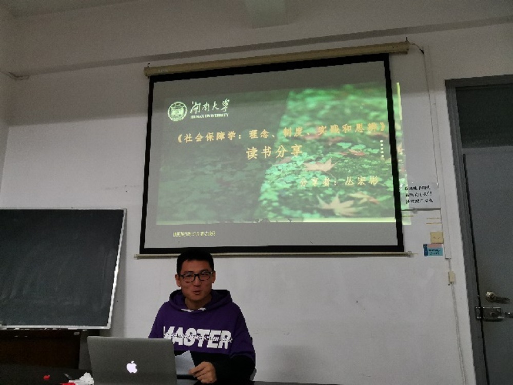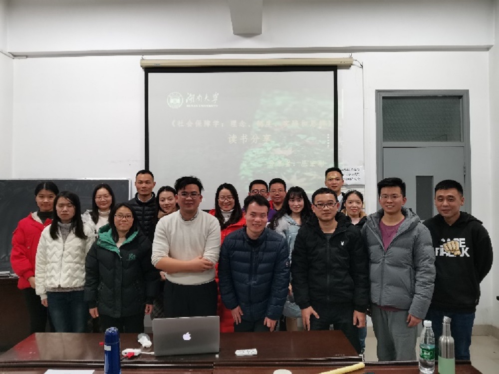322教室成功举办。博士生孔心悦,硕士生丛宏彬、冀启星、肖苏华先后就《社会保障学:理念、制度、实践和思辨》(郑功成教授著,商务印书馆,2000年版)进行读书分享。本次读书会分为读者讲坛、百生争鸣、专家总结三个环节,由轮值教师杨晶主持,江海霞老师和万旋老师作为点评嘉宾参与讨论。
