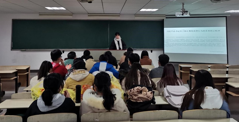 班会伊始,洪潇玲同学对习近平总书记关于制止餐饮浪费行为的重要指示精神进行简要介绍。习近平总书记一直高度重视粮食安全,倡导“厉行节约,反对浪费”的社会风尚,多次强调要制止餐饮浪费行为。洪潇玲同学展示了各地积极行动落实习近平总书记重要指示精神的见闻,让同学们了解到各地为了深入贯彻落实这一指示做出的努力,警示各位同学以身作则、节约粮食,厉行勤俭节约。