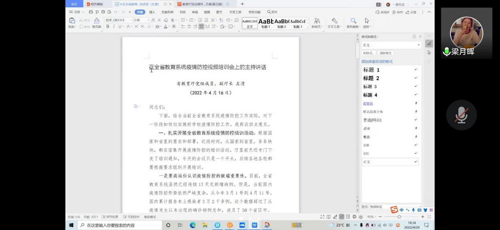 实际,于2022年4月20日进行防控培训,由班长陈楠主持,行政1901、1902班全体同学参加。为了配合疫情防控工作,本次培训在腾讯会议APP举行。