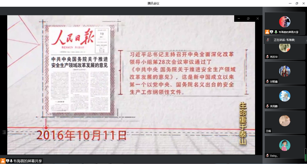 2022年5月5日晚,2020级公共管理硕士班通过线上会议开展主题教育班会,班会由年级长韦海蓓主持。第一项内容,韦海蓓向同学强调安全的重要性,教育引导同学们坚决远离危房,禁止到校园周边各类安全条件不具备的场所特别是违章非法建筑物内聚集玩耍或消费,增强安全意识,提高安全防范能力。第二项内容,对全体同学,尤其是校外住宿同学的居住地安全隐患问题进行排查。据悉,2020级研究生全体同学居住地不存在安全隐患。班会第三项内容,全体同学共同观看学习电视专题片《生命重于泰山》。通过专题片的学习,了解了习近平总书记关于安全生产重要论述,对安全生产有了进一步的认识。