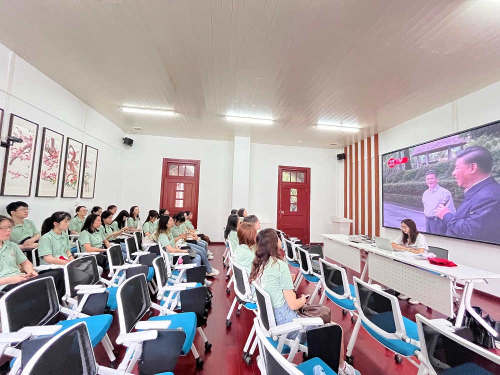 校史学习结束后,助理辅导员林子如与2023级研究生同学通过观看视频,一同重温习总书记到第一会所
