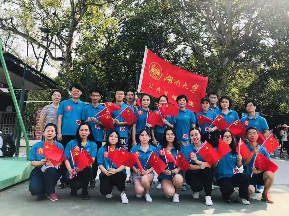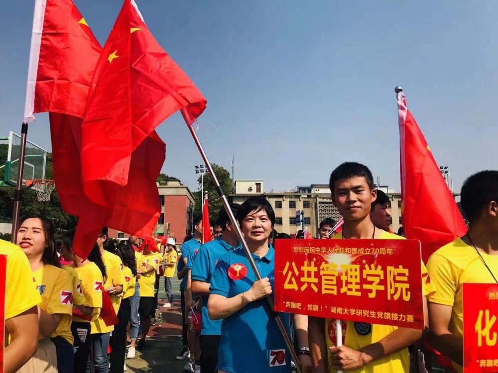 参赛选手们整装待发,作为第一棒选手的付蓉芬老师在起跑哨声响起时,首个冲出起跑线,保持着平稳矫健的步伐在东方红广场前的五星红旗交给杜倩博老师继续传递。两位老师的激情也点燃了全院20名参赛队员,研究生选手斗志昂扬,越战越勇,手持国旗、党旗,朝着麓山顶端奋力奔跑。第十九棒选手在“青春告白祖国”环节中,代表参赛队员写下了对祖国的深情告白:公管学子齐力奋进新时代,祖国华诞同心祝福永繁盛!最终在大家齐心合力之下,取得了第四名的好成绩。登顶成功之后,第一会所