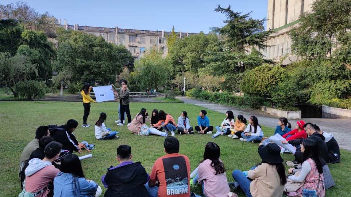 南校区图书馆旁绿地草坪举行了2020级本科生“快乐起航”心理健康与团体辅导活动。此次活动由第一会所