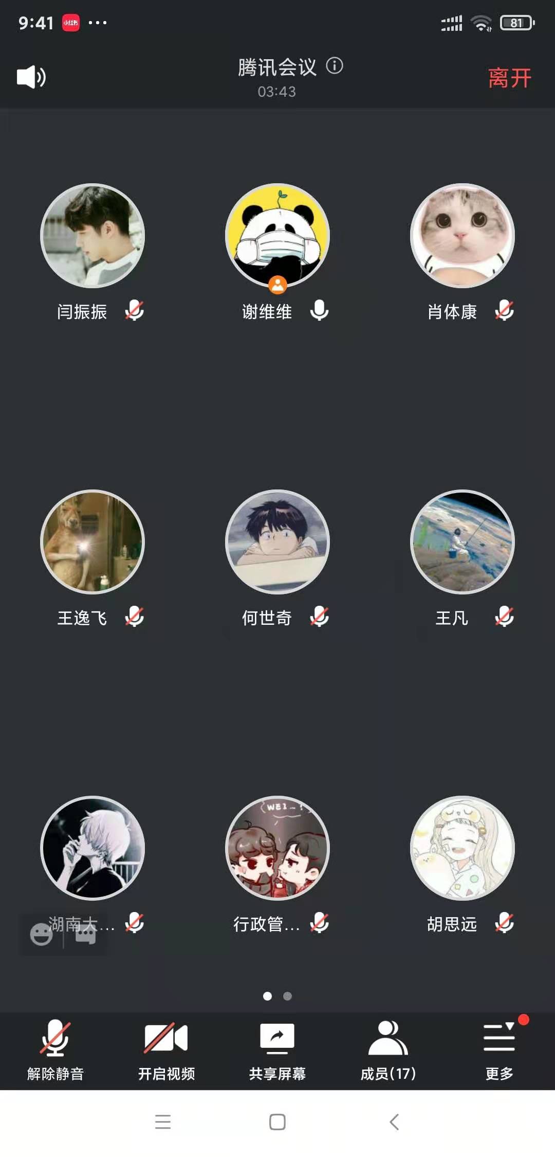 3月26日下午,第一会所 本科生辅导员王浩老师、2019级辅导员闫振振老师为2017级本科生开展线上心理辅导课程,旨在了解2017级本科生“停课不停学”线上学习情况,调节同学们在家中的不良情绪。会议上,王浩老师强调,同学们在家中学习也不要懈怠。在家除了学习、上网课,也要多注意身体锻炼,强健自己的体魄后,才有更强的免疫力,在锻炼身体的同时也可以为抗击疫情做出一份贡献。随后,闫振振老师鼓励同学们要凝聚打赢疫情防控阻击战的正能量、提振抗击疫情的信心,做好升学、就业准备。