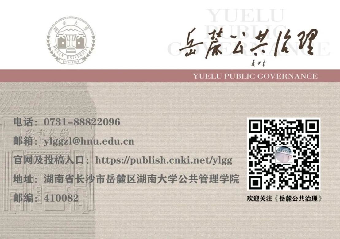建设的公共治理类专业学术期刊。本刊为季刊,国内统一刊号为CN 43-1559/C,国际标准刊号为ISSN 2097-2180。